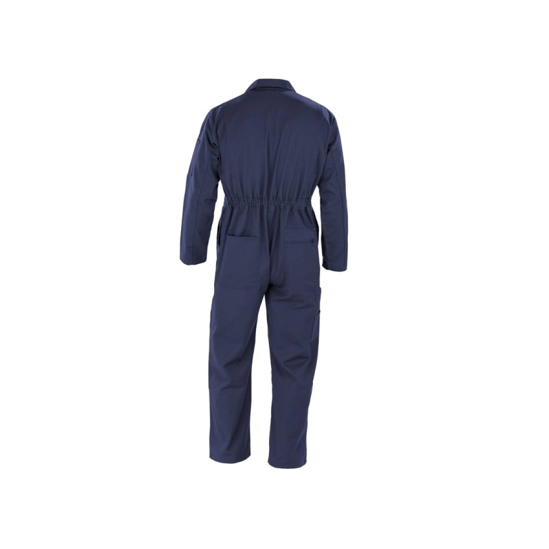100% polyester recyclé sergé. Combinaison respirante, coupe-vent. Fermeture zippée YKK à deux directions avec rabat de protection extérieur. Poches latérales avec grand accès. Taille élastiquée dans le dos. Col fermé par bouton-pression. Poche stylo sur la manche, poche poitrine zippée et poche mètre.