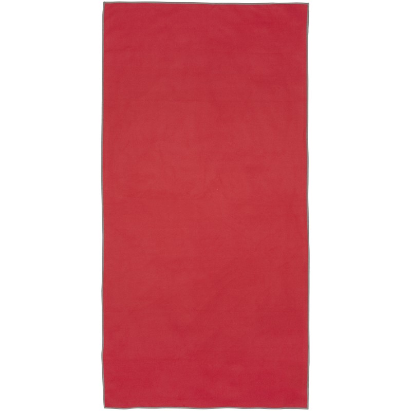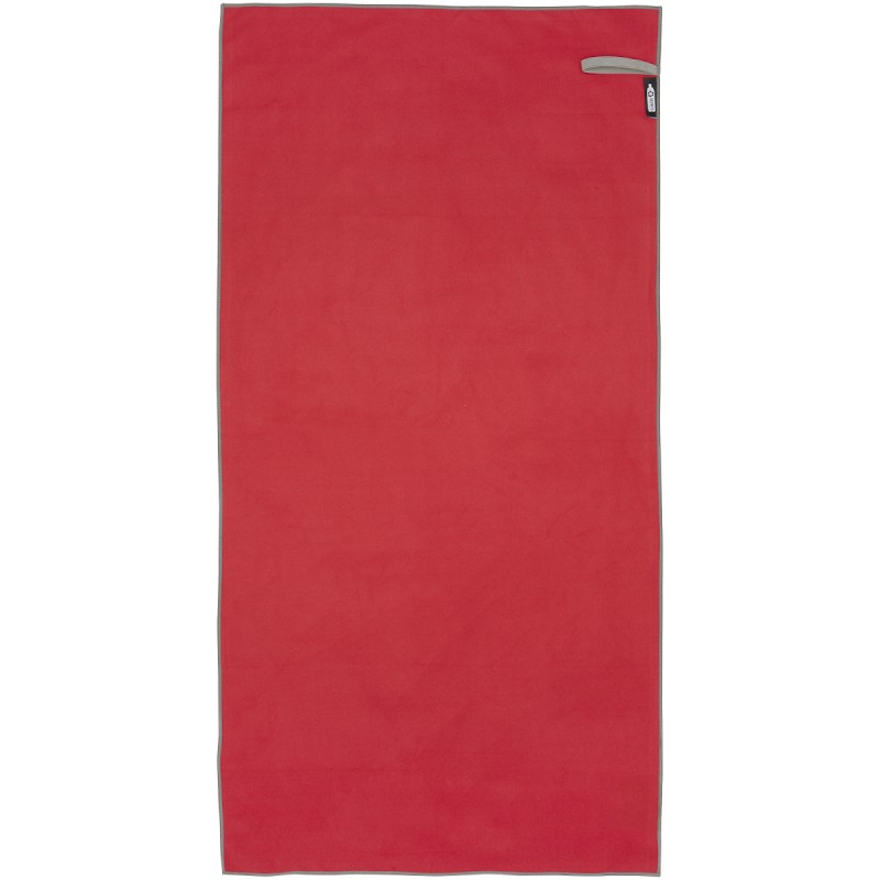 La serviette de sport Pieter absorbe très bien, est légère, sèche rapidement et le tissu est durable et extrêmement doux. Lorsque la serviette est pliée et fixée à l'aide de l'élastique, elle est réduite à une petite taille, ce qui permet de l'emmener à la salle de sport, à la piscine, ou de l'utiliser en randonnée ou en camping. D'une taille de 50 x 100 cm, la serviette est composée à 90 % de polyester recyclé certifié GRS et à 10 % de nylon. Elle peut être lavée en machine à 40 °C. Elle est livrée avec une pochette de rangement (17 x 13 cm) en plastique PET recyclé, qui offre une surface idéale pour l'impression d'un logo.